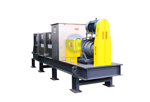 物料由进料口进入新型小猪视频在线看免费下载挤压机,通过小猪视频在线看免费下载导辊的导程由宽变窄和导辊叶槽由深变浅,故物料在运动中受到的压力逐渐增加,使物料液体通过不锈钢分离网分离,分离出的液体则从机组底部和导辊内部的排液口排出,被挤干的物料由出料口排出。本设备主要由机座、小猪视频在线看免费下载导辊、脱水系统(分离网架、不锈钢分离网)、减速机、电机等组成。